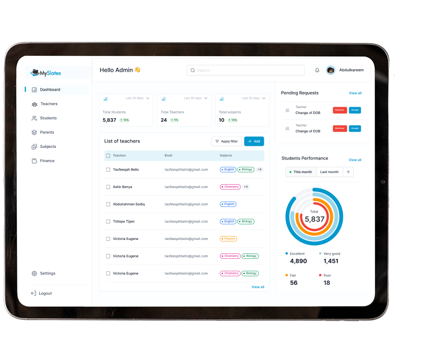 MySlates provides teachers with essential educational tools and resources tailored to the Nigerian curriculum, helping them enhance their teaching methods and improve student engagement.